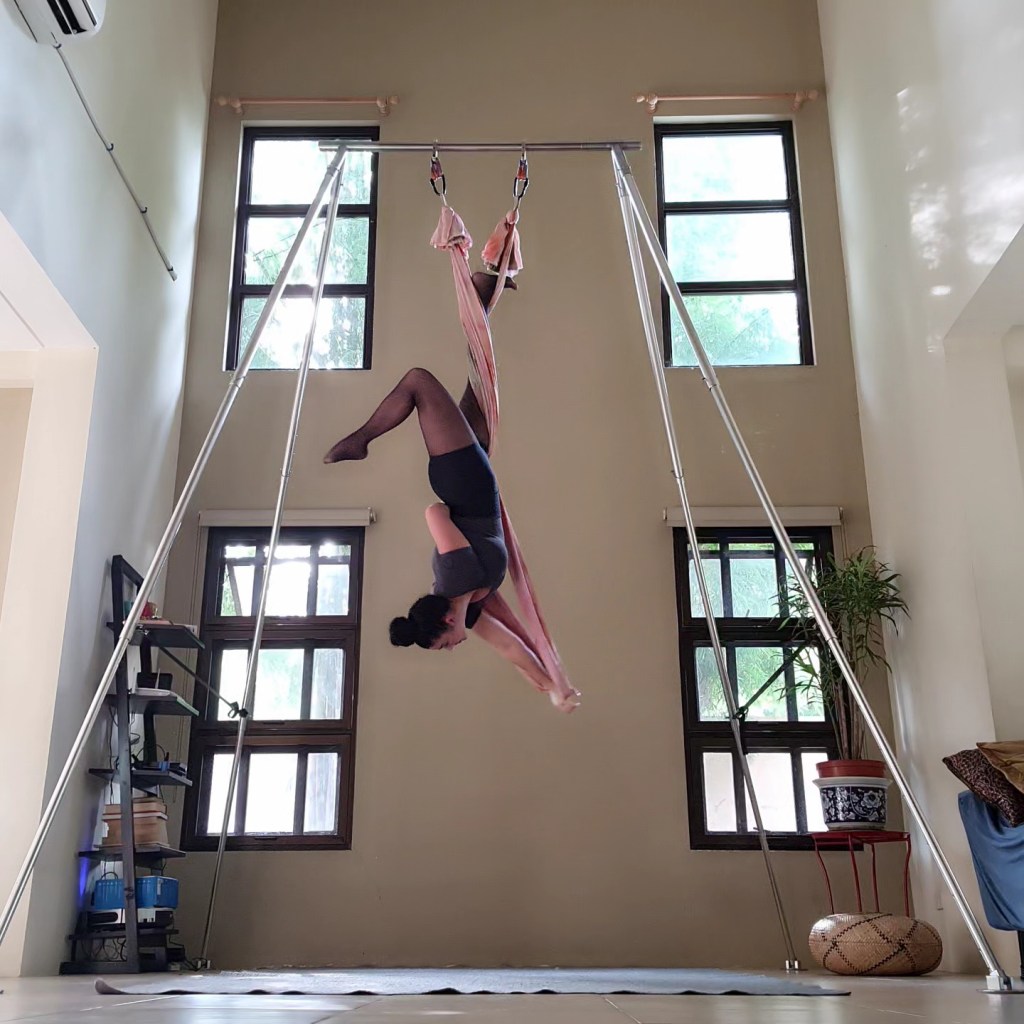 Practice on my flow from yesterday again without spin💞My kitty was also working on her skills😻 #aerialistsofig #alabang #aerialsplits #aeriallove #airyoga #danzaaerea #aerialbeauty #aerialartist #aerialballerina #aerialdance #aerialyoga #flyingyoga #aerialsport #aerialfitness #aeroyoga #flyingfitness #aerialhammock #aerialfun #catplay #aerialflow #flightofvenus #aerialnation #saturdaze#aerialshapes #エアリアルヨガ #플라잉요가 #空中瑜珈 #에어리얼요가 #aerialpose #aerialinspiration